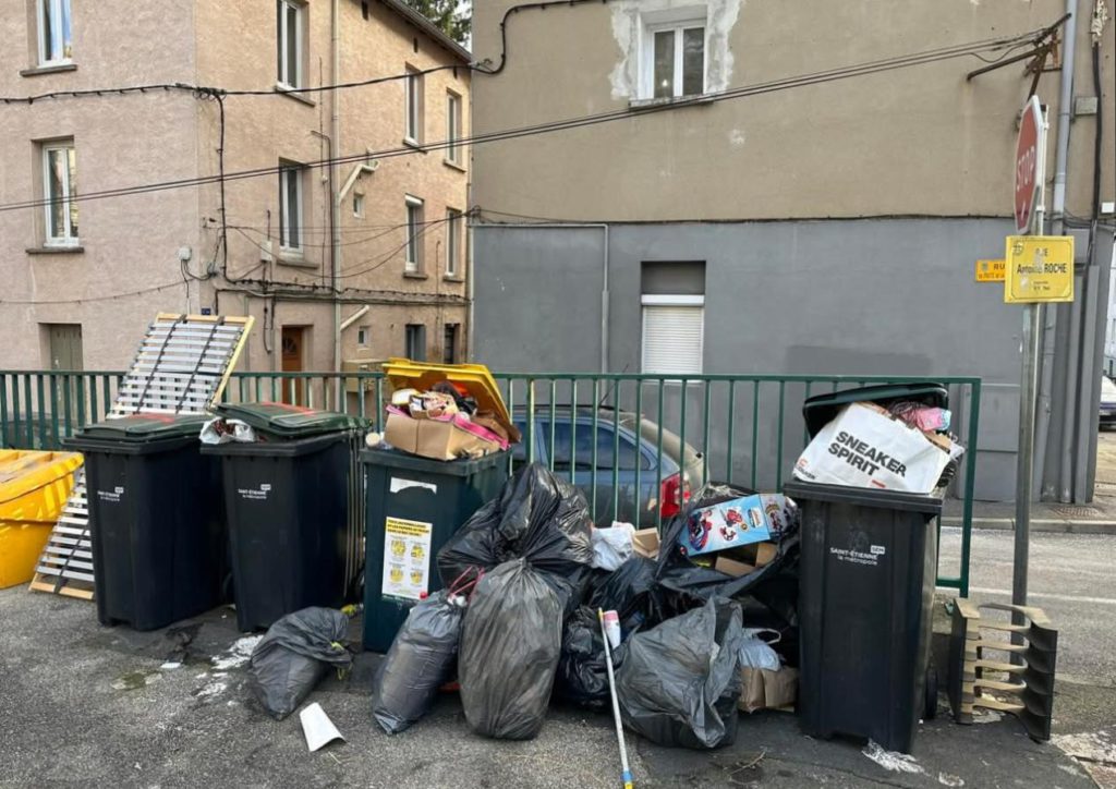 Depuis juillet 2023, sous l’impulsion de Saint-Étienne Métropole, la fréquence de collecte des ordures a été brutalement réduite. On est passé de 3 tournées par semaine à 2 en centre-ville, et 1 seule dans les quartiers pavillonnaires.